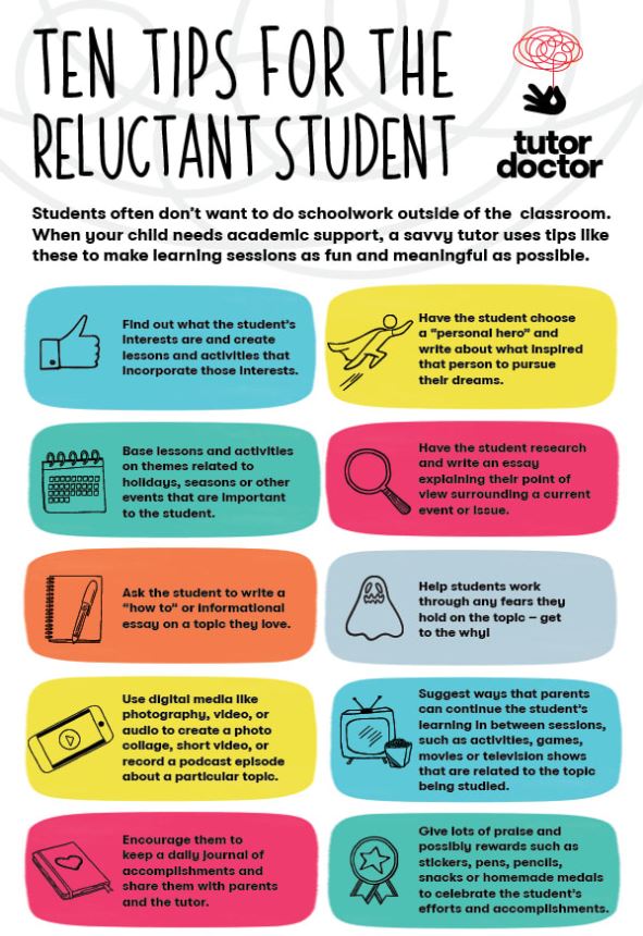 Tutor Doctor has created a useful guide for adults teaching their children from home. Suggesting they do what works for them and end lessons on a positive note, the franchise aims to ease the pressure on parents. It also created a helpful infographic called ‘10 Tips for the Reluctant Student’. They included using digital media to present facts and encouraging children to keep a daily ‘achievement’ journal.